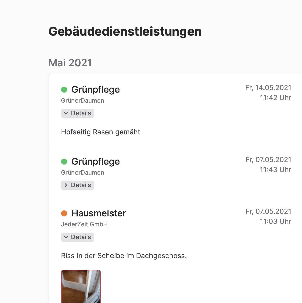 30. April 2021WEG+ hat einen neuen Bereich "Dienstleister". Dort können Eigentümer·innen nachvollziehen, welche Dienstleister (Hausmeister, Hausreinigung, Gartenpflege, …) wann vor Ort waren. Möglich wird das auf verschiedenen Wegen: die Daten von Dienstleistern, die ihre Leistungsnachweise bereits online (z.B. über ein Kundenportal auf der Website) bereit stellen, können automatisiert ausgelesen werden. Alternatnativ können Dienstleister, wenn Sie vor Ort sind, ein NFC-Tag mit ihrem Smartphone antippen oder einen QR-Code einscannen.