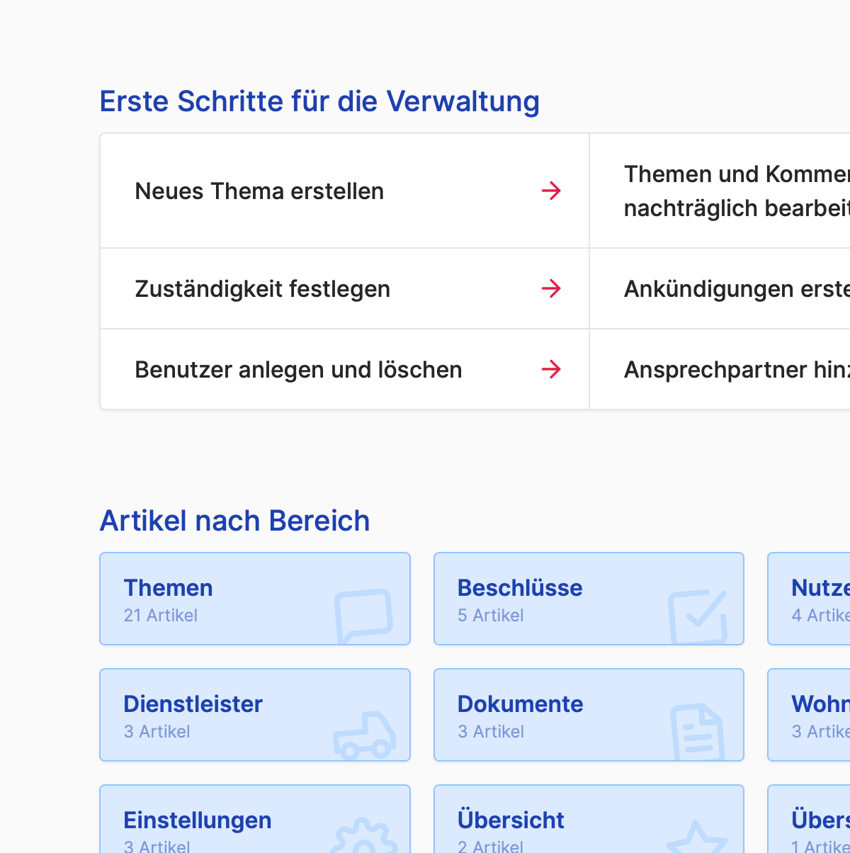 30. Juni 2021Um neuen Benutzer·innen die Arbeit mit WEG+ zu erleichtern und einen problemlosen Einstieg zu gewährleisten, gibt es nun ein umfangreiches Hilfeportal mit Hilfeartikeln zu unterschiedlichsten Themen, gegliedert nach Themen, Zielgruppen, etc. Weiterhin haben wir hier unseren Helpdesk integriert, wo Benutzer·innen Supportanfragen stellen können, sollten sie an einer Stelle nicht weiter wissen oder einen Fehler finden.